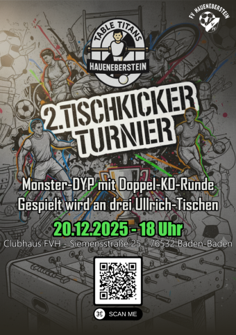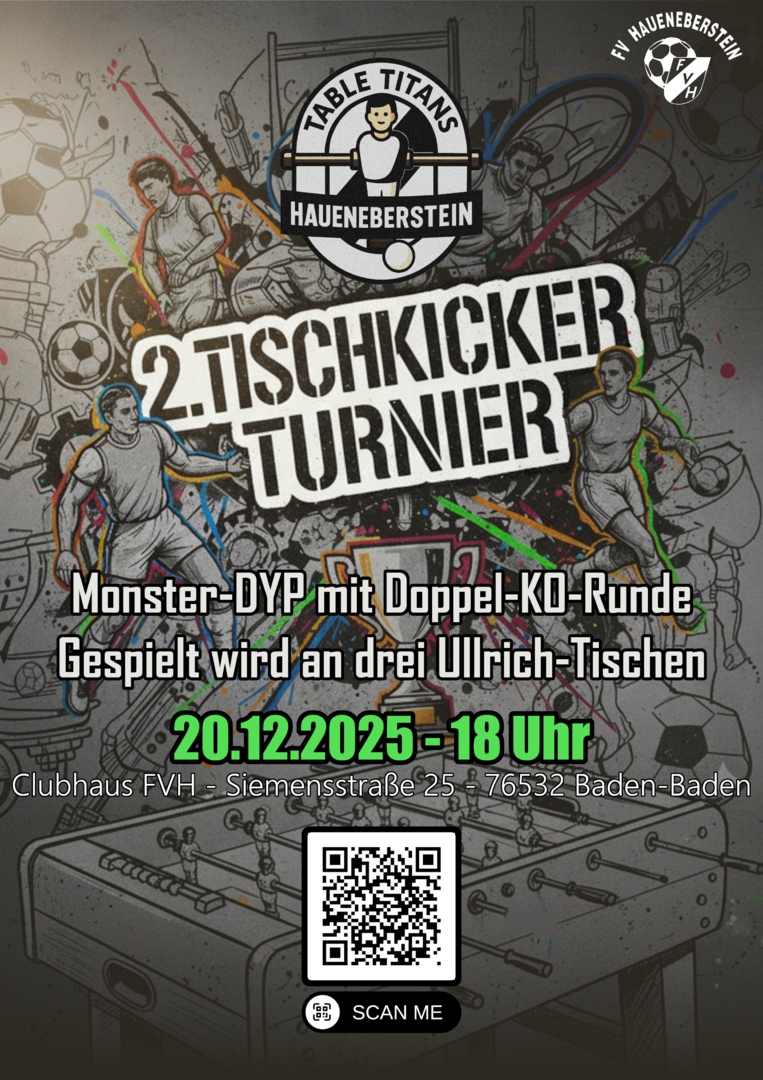 Die hauseigene Kickermannschaft des FV Haueneberstein veranstaltet jeden Donnerstag ab 19 Uhr eine offene Kickerrunde. HIerbei ist jeder